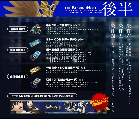 12/16までにレアアイテムがあたれば、ハルシオンデータチケットをもう一枚プレゼント!