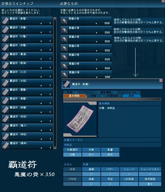▼覇道符(30分間自分の相性威力増加の消耗品。トレ不可)