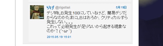 いくらLB発生100でもクリティカル出ませんよっていうお話でした(´・ω・`)