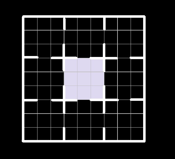 Dが生成されると、この9マスの中のどこかに飛ばされます。