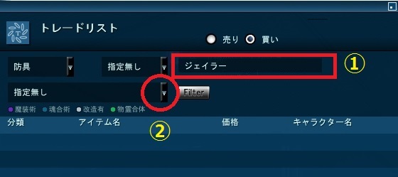 見てみたい装備の一部名を入力。今回は " ジェイラー " で入力してみました。